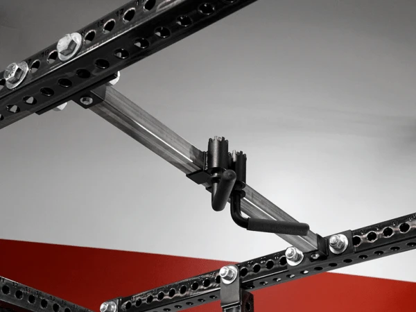 The Sorinex Indexing Chin Bar was designed out of necessity. Replacing static overhead pull-up options with variable positioning for an integrated overhead system for safer and more efficient movement. Attach anywhere inside of racks for increased space efficiency. Indexing handles rotate and lock in at 45-degree increments for 8 different pull-up angles. These handles can be moved closer or further away from each other for wide/narrow grip variations, as well. The Sorinex Indexing Chin Bar supports the athlete inside of the Base Camp, XL Series, and Dark Horse Racks. Control the risk in your training environment. Allow more athletes than ever to train at one station, increasing the carrying capacity of your facility. The configurations and adjustments are endless. Limited only by lack of creativity. The Sorinex Indexing Chin Bar utilize our industry First 4-Way Hole Design allowing all bars, brackets, and add-ons to be secured in any direction front to back or side to side. Thus a new proven concept, room for constant growth, change and efficient training time. Forever changed is the “world” available to practitioners of Strength. The Sorinex Indexing Chin Bar comes standard on all Base Camp Series w/ Uber Package racks.