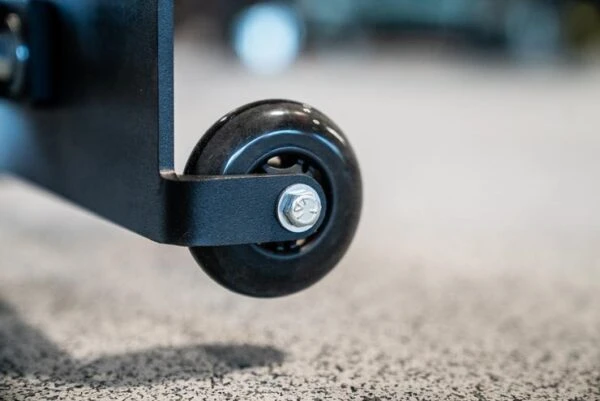 This machine measures 58 inches long by 22 inches wide by 19.5 inches high and the roller pads are adjustable to accommodate users of more sizes. Although it weighs 86 pounds, the Poor Man Glute Ham Developer does come with transport wheels.