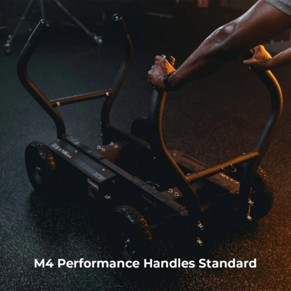 The all-new TANK™ M4 is the evolution of the All Surface Sled category. With all of the same great features of our original TANK M2, plus the addition of some new ones, the M4 is ready to hit training centers around the world. New to the M4 is a double braking system that allows different resistance levels to be set depending on which side of the TANK you’re pushing or pulling from, as well as eliminating the need for weight to be added to the sled. We’ve added an accessory tray in the middle for storage and also made Performance Handles standard. Weight horns have been made into an optional accessory for more serious performance atheletes who wish to use the TANK for intense towing exercises.