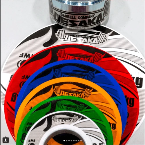 Uesaka’s IWF approved 1 Rule kg Metal Plates are designed for quick change with our outside Sevi collar system. There are six weight increments from 0.5 kg up to 5 kg. With a 50.0 mm diameter collar opening. These quality plates are compatible with our IWF Olympic barbell. They are color coded per IWF standards Green-Yellow-Blue-Red-White. The 2.0 kg – 0.5 kg metal plates are designed for the outside system, or can be used inside with your own collar. The 5 kg and 2.5 kg plates are inside plates only.